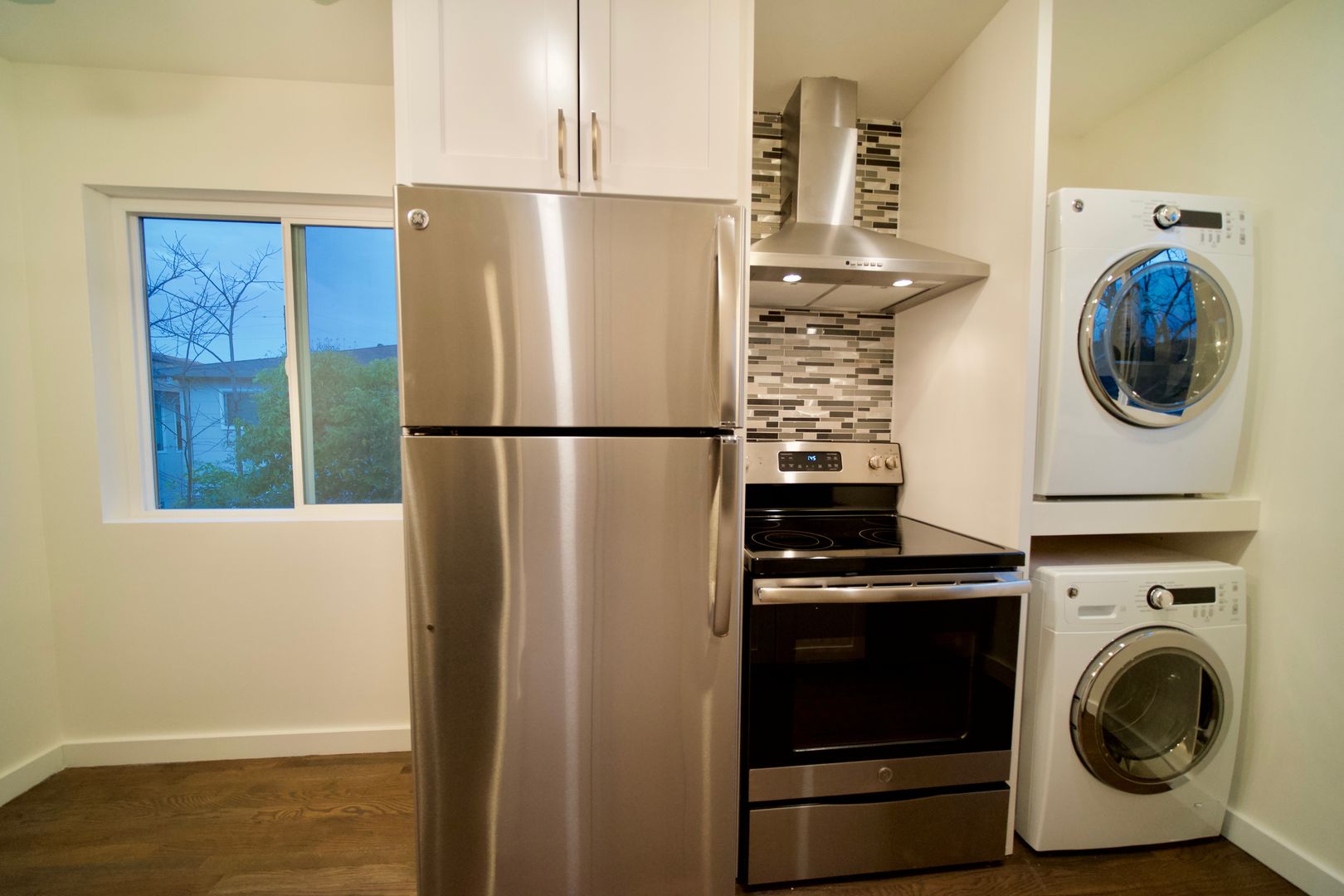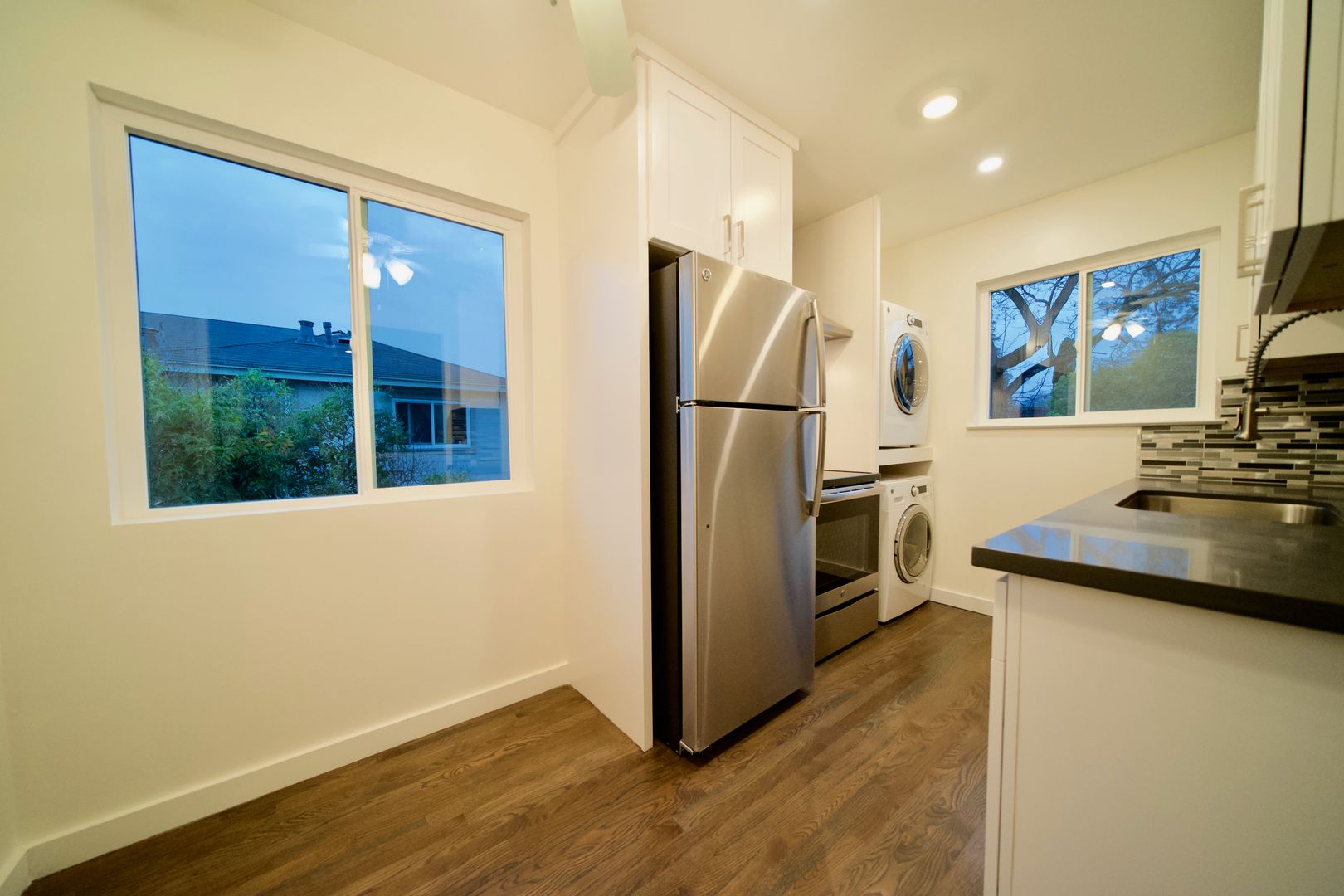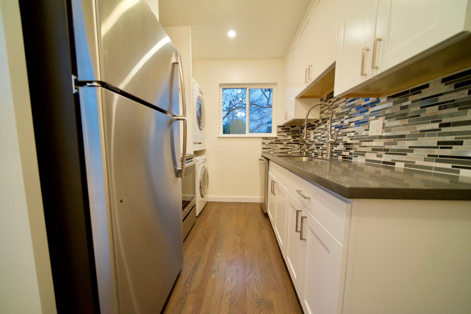 Hardwood floors throughout, quartz countertops in kitchen with dishwasher, garbage disposal, electric range and stove. Washer/dryer in unit and comes with 1 carport parking spot with storage included.