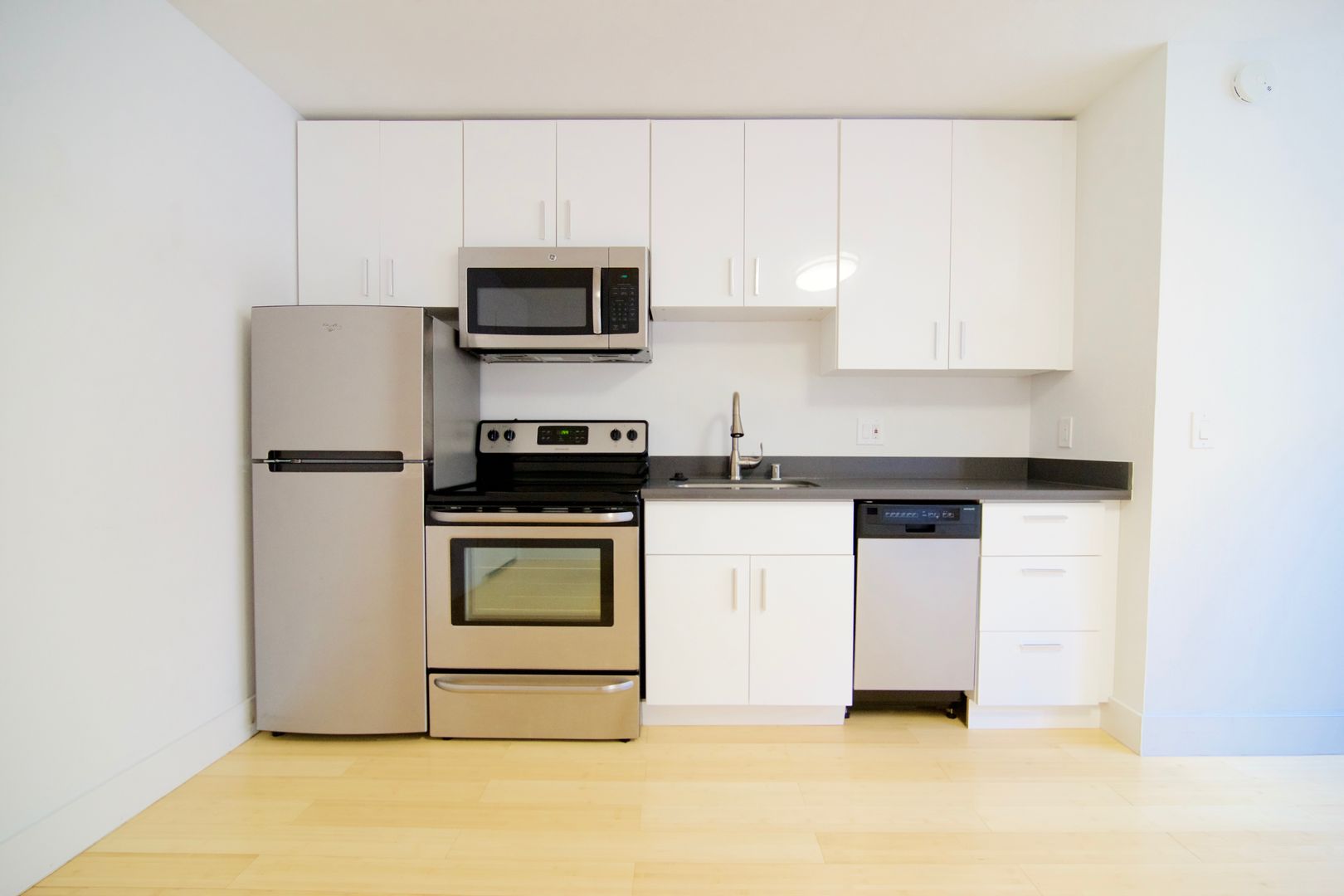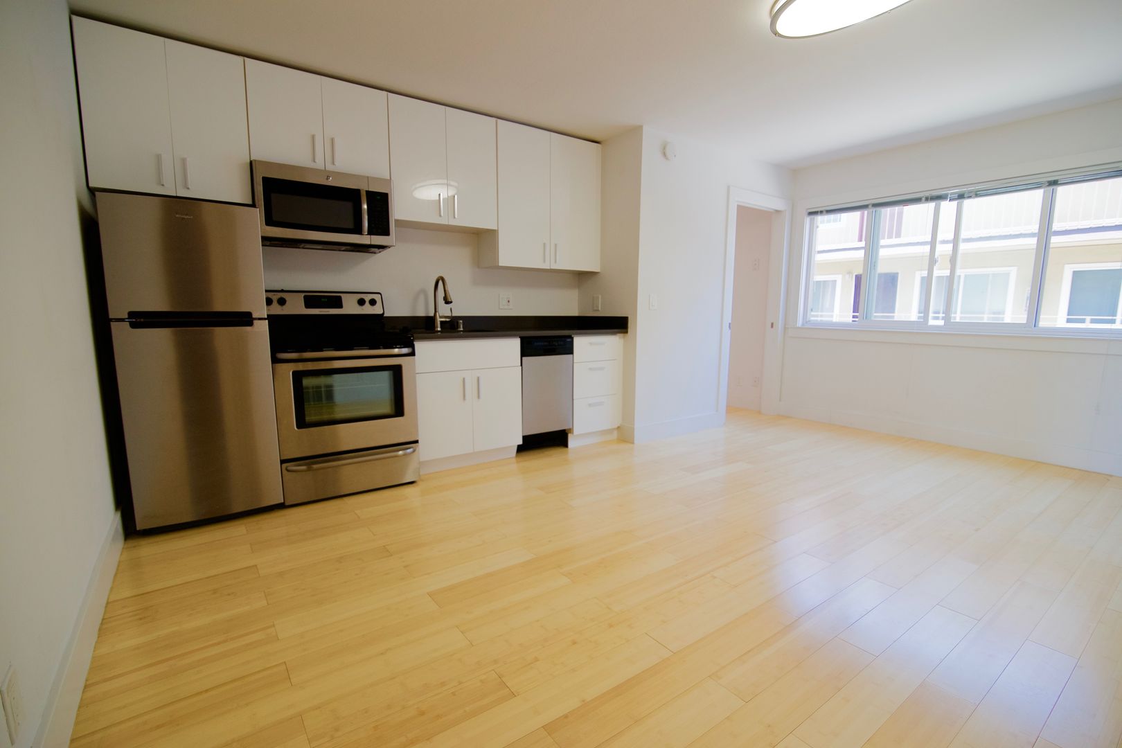 Great, Small, 1 Bedroom, 1 Bathroom, updated apartment, Bamboo floors, quartz countertops, stainless appliances, Dishwasher, Garage Parking space included