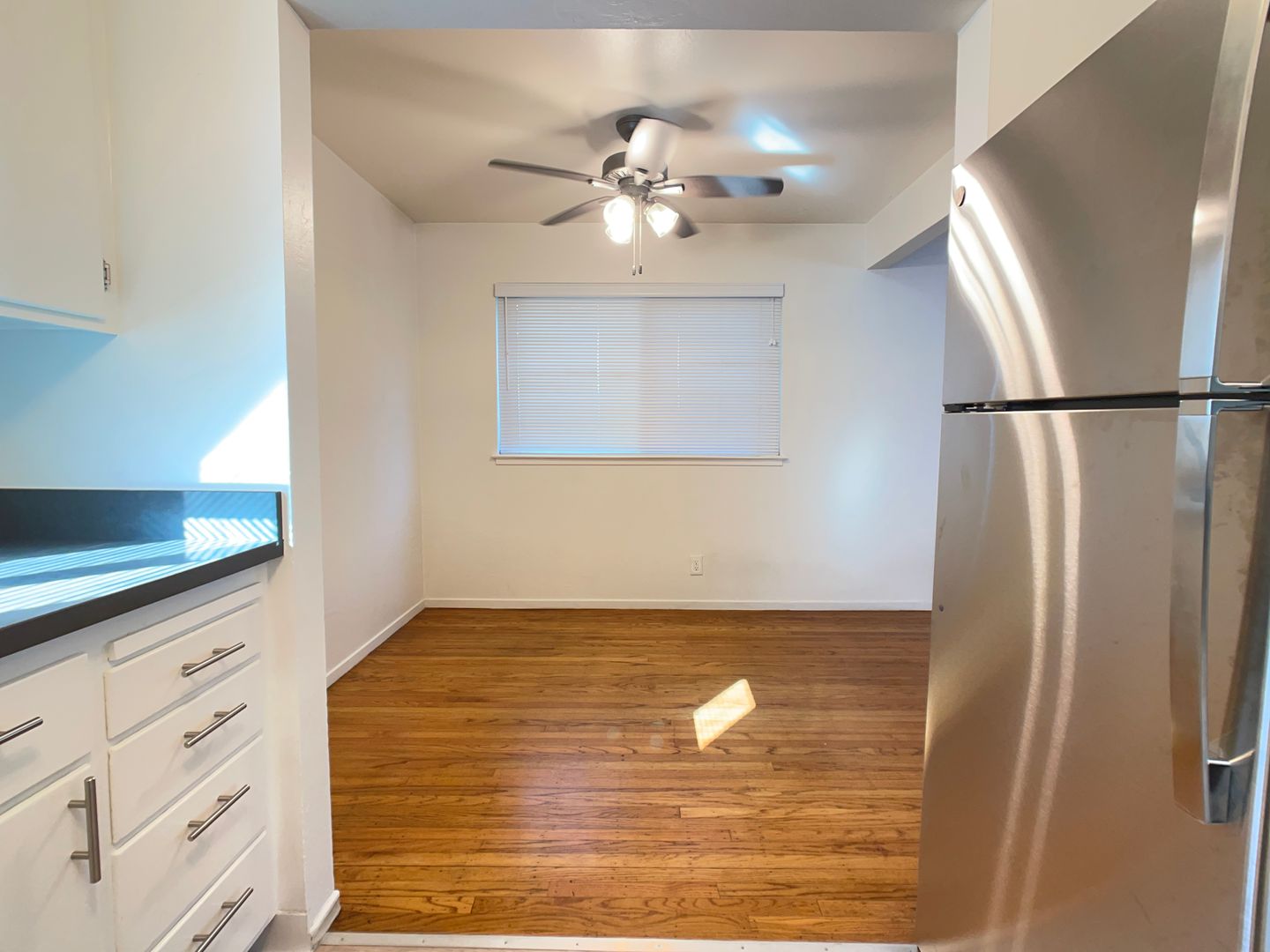 Spacious 2 bed, 1 bath apartment with hardwood floors, new kitchen countertops and fresh paint throughout! New flooring in kitchen with quartz countertops, new sink, stainless steel refrigerator and updated oven. Includes 1 parking spot in rent, option for tandem parking (2 cars).
