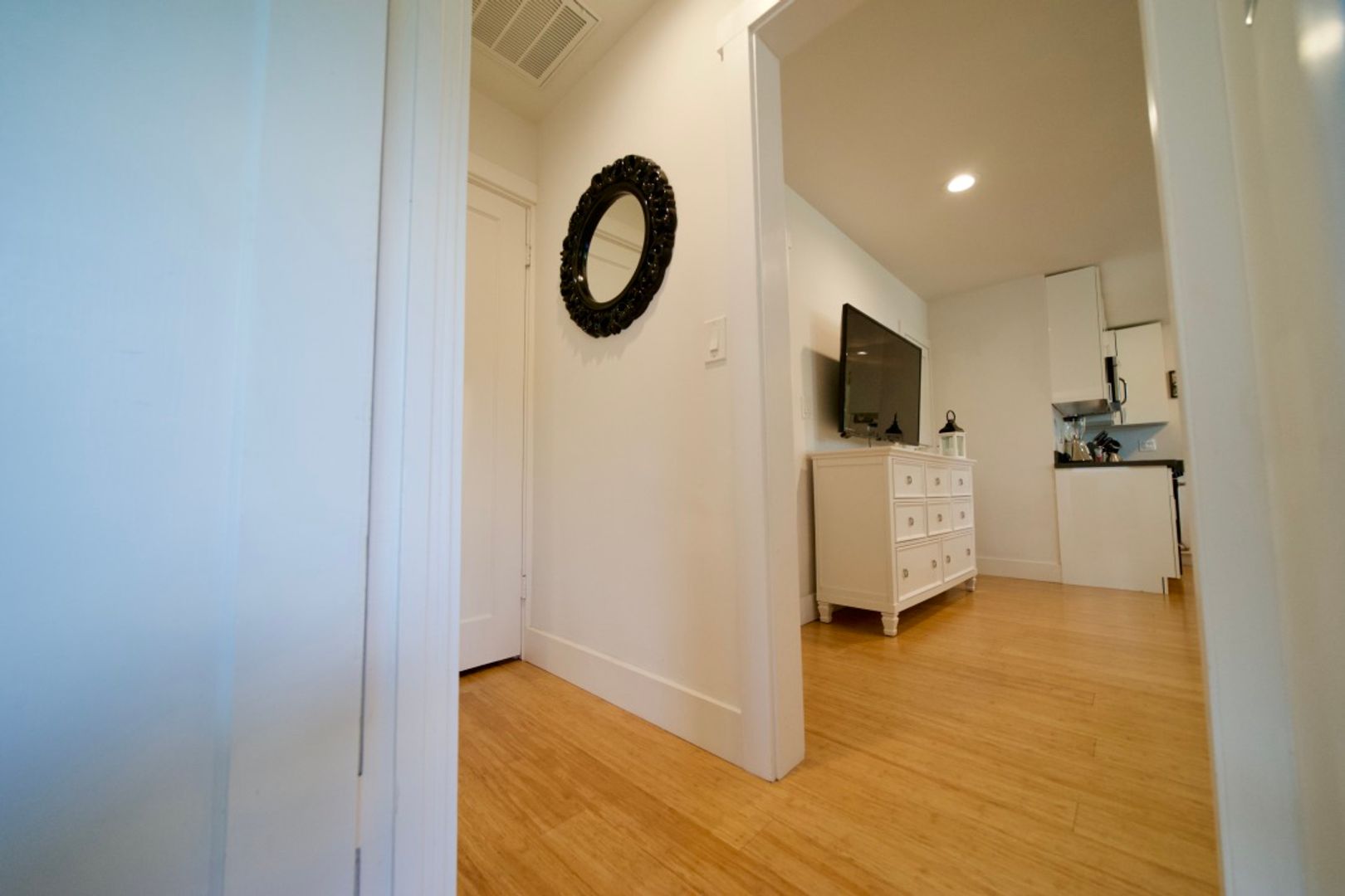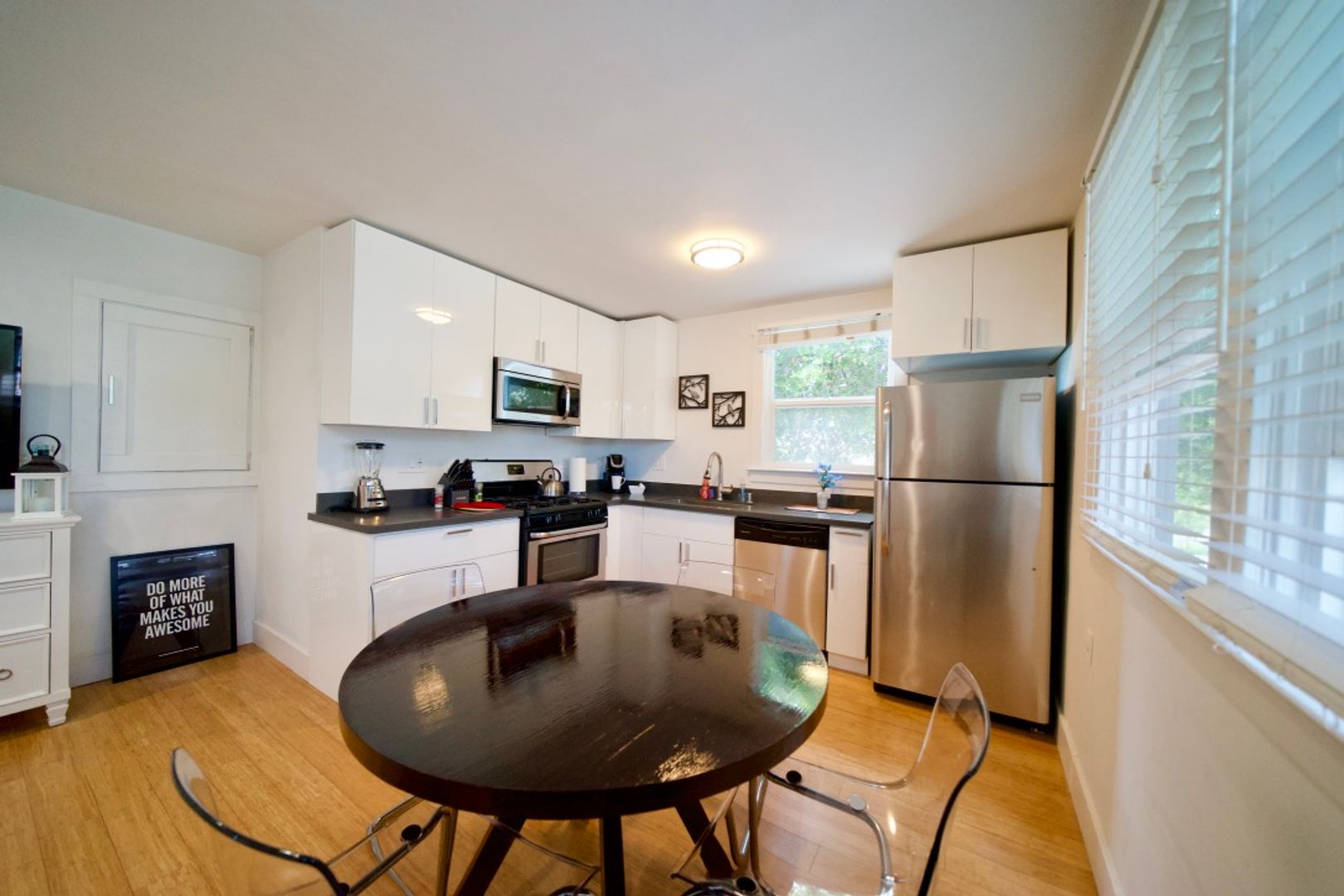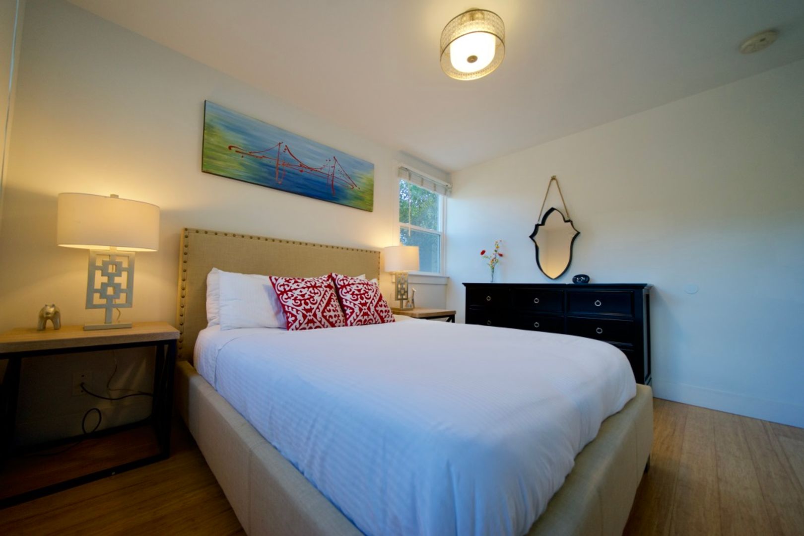 Fully furnished 1 bedroom, 1 bath, 650 sq. ft. apartment blocks from Downtown Menlo Park. Air Conditioning and In Unit Laundry, Open floor plan with kitchen overlooking the living room, with ample natural light. Bamboo floors throughout apartment, updated kitchen with quartz counter tops and bar stools. Stainless steel appliances including refrigerator, gas range, dishwasher and microwave.